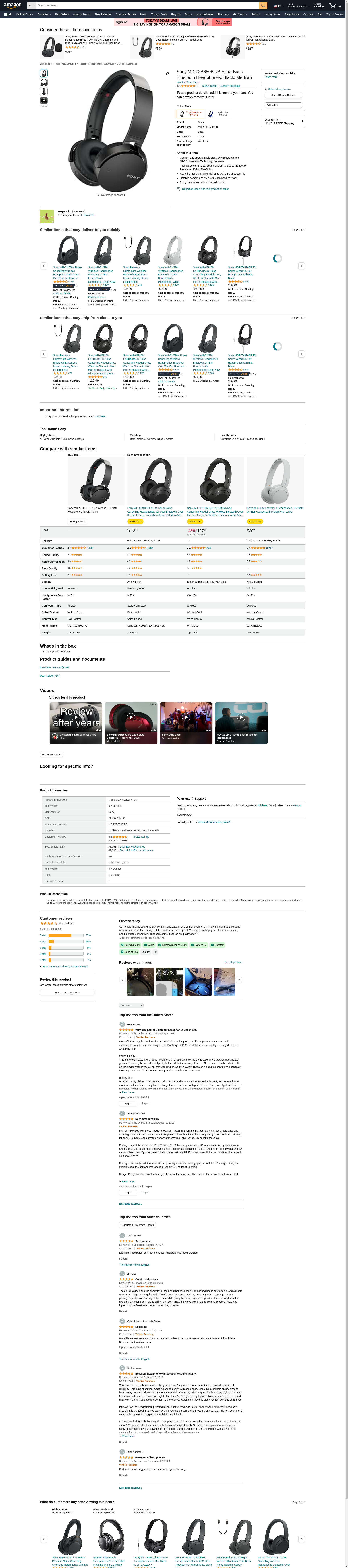 Sony MDR-XB650BT Black Extra Bass Bluetooth Headphones MDRXB650BT