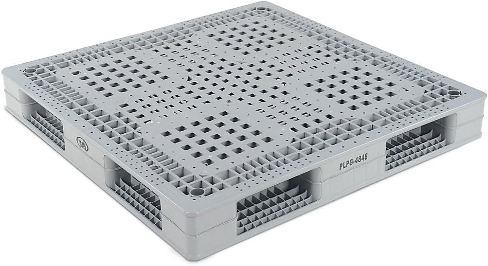 Vestil PLPG-4848 Standard Duty Grey Polyethylene Pallet with 4 Way Entry, 6600 lbs Capacity, 47.25" Length, 47.25" Width, 6" Height