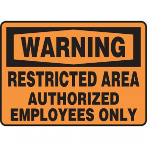 Accuform MADM306VP, 10" x 14" OSHA Warning Safety Sign "Restricted Area ..." Plastic Legend "Restricted Area - Authorized Employees Only" Features: Light abrasion and chemical resistance that will not rust, chip, or crack Fluted polypropylene .160" thick Requires mounting to a wall or fence Withstands wet, damp, and other limited environmental exposure Finished with square corners and four mounting holes