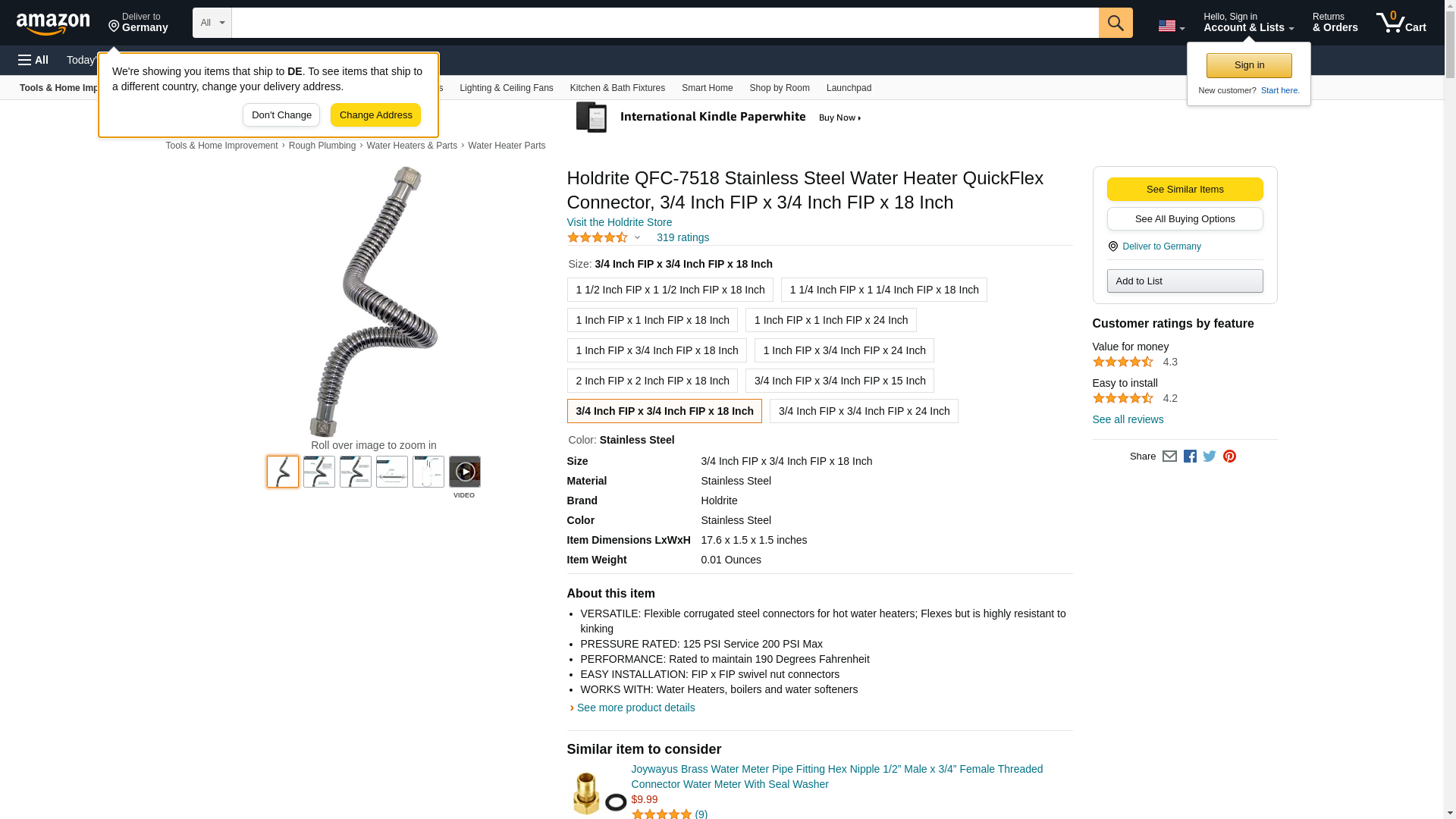 Holdrite QFC-7518 QuickFlex Water Heater Connector, 3/4-Inch FIP by 3/4-Inch FIP by 18-Inch, Aluminum