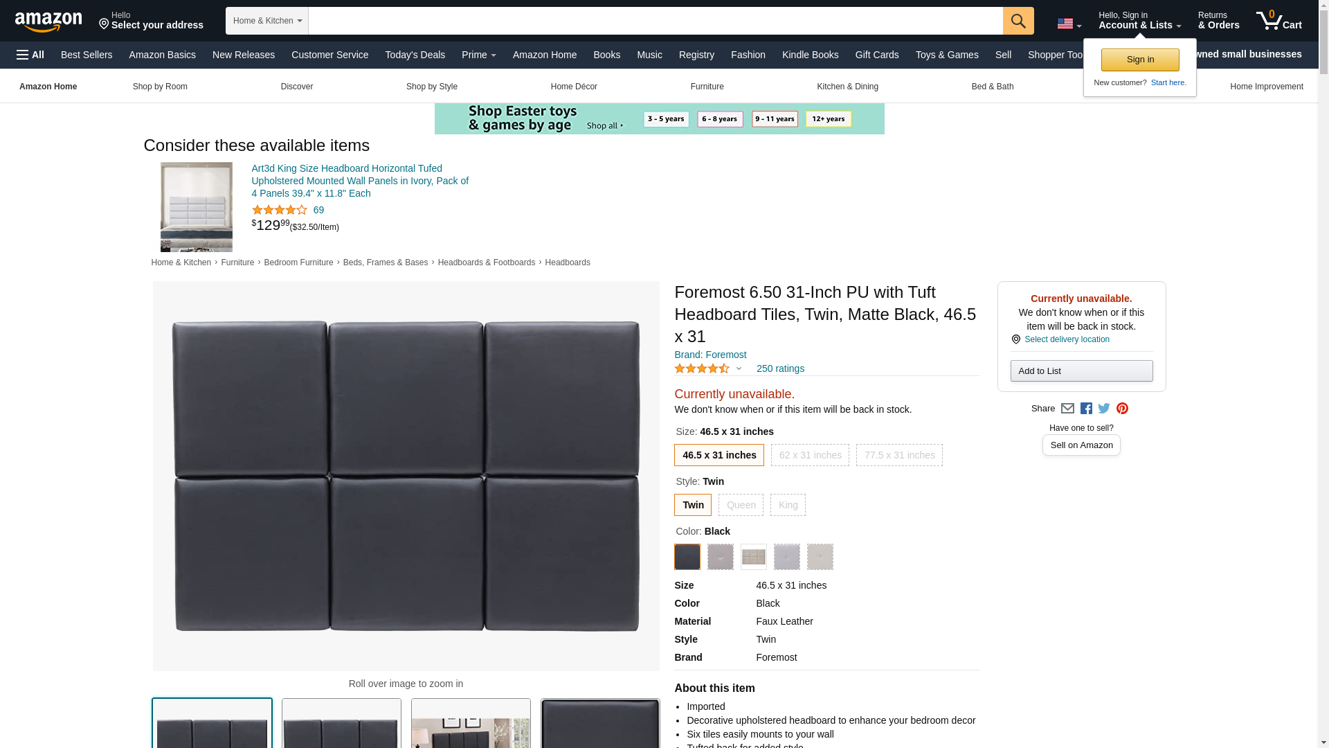 Foremost 62 31-Inch PU with Tuft Headboard Tiles, Queen, Matte Black, x 31 inches