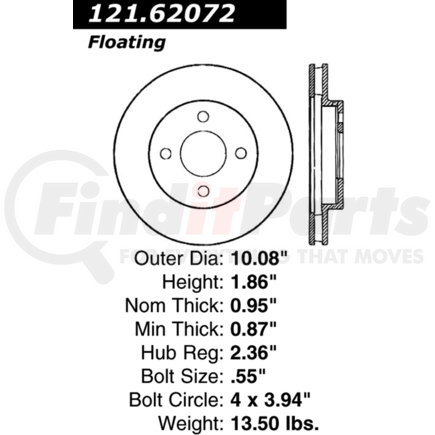 Centric Parts 121.62072 C-Tek Standard Brake Rotor