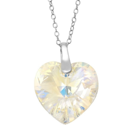 Luminesse Heart Pendant Necklace with Aurora Borealis Swarovski Crystal in Sterling Silver