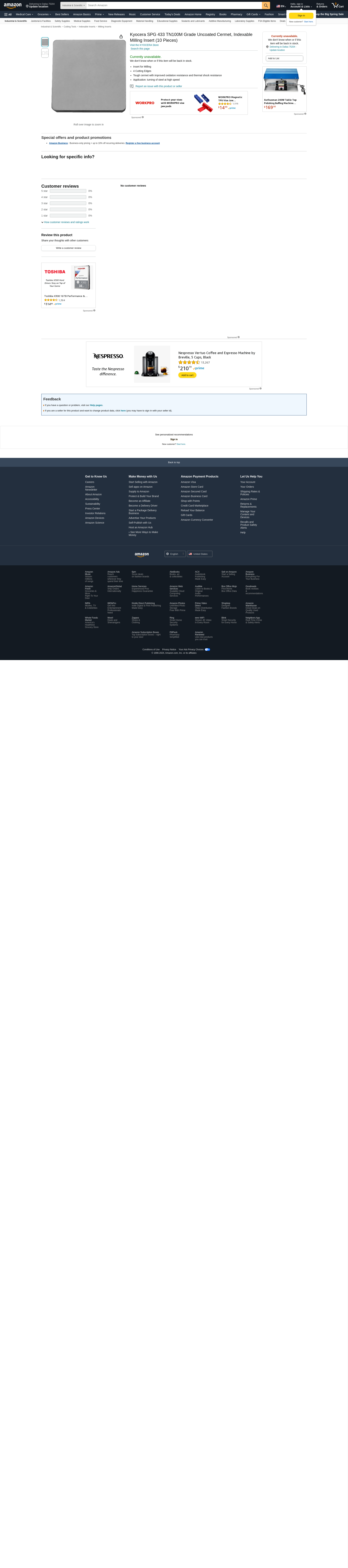 Kyocera SPG 433 TN100M Grade Uncoated Cermet, Indexable Milling Insert (10 Pieces)
