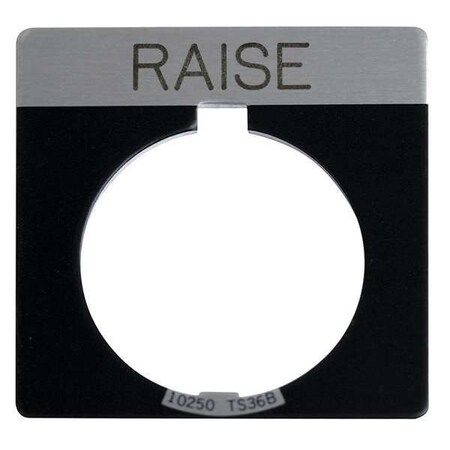 Eaton 10250T pushbutton legend plate, 10250T series, Square Legend Plate, Black, Legend: RAISE, 3/16 In high, White letters, Standard