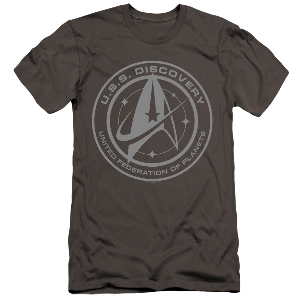 Trevco CBS2564-PSF-3 Star Trek Discovery & Discovery Crest-HBO Short Sleeve Adult 30-1 T-Shirt, Charcoal - Large