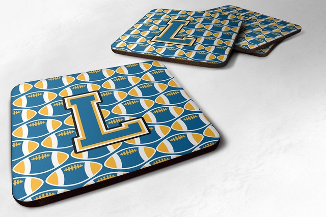 Carolines Treasures CJ1077-LFC Letter L Football Blue & Gold Foam Coaster, 3.5 x 0.25 x 3.5 in. - Set of 4