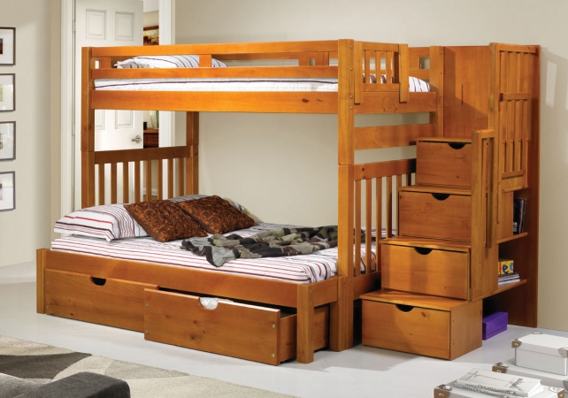Pivot Direct PD-200H-TF-505 Tall Twin over Full Mission Stairway Bunk Bed with Storage Drawers in Honey