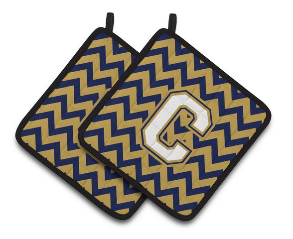 Carolines Treasures CJ1057-CPTHD Letter C Chevron Navy Blue & Gold Pair of Pot Holders, 7.5 x 3 x 7.5 in.