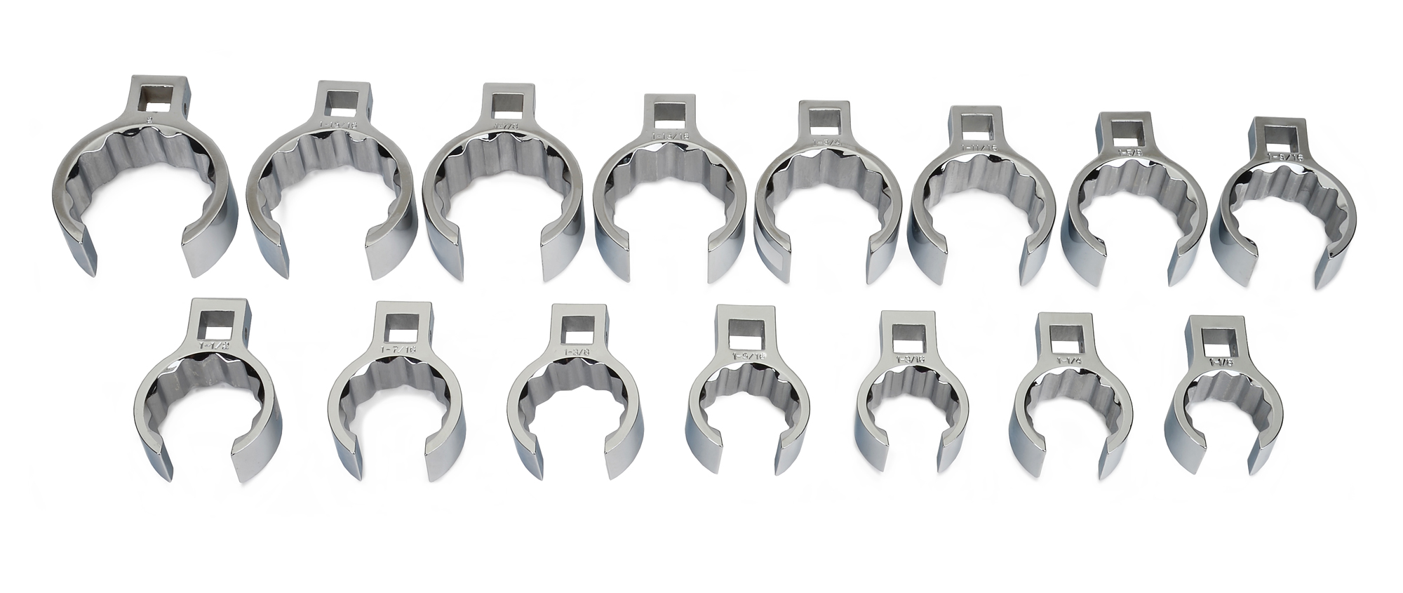 Williams WSSCF-15 Chrome 1/2" Drive Crowfoot Wrench Flare Nut On Clip Rail 15 Piece Set 12 Point SAE JHWWSSCF-15