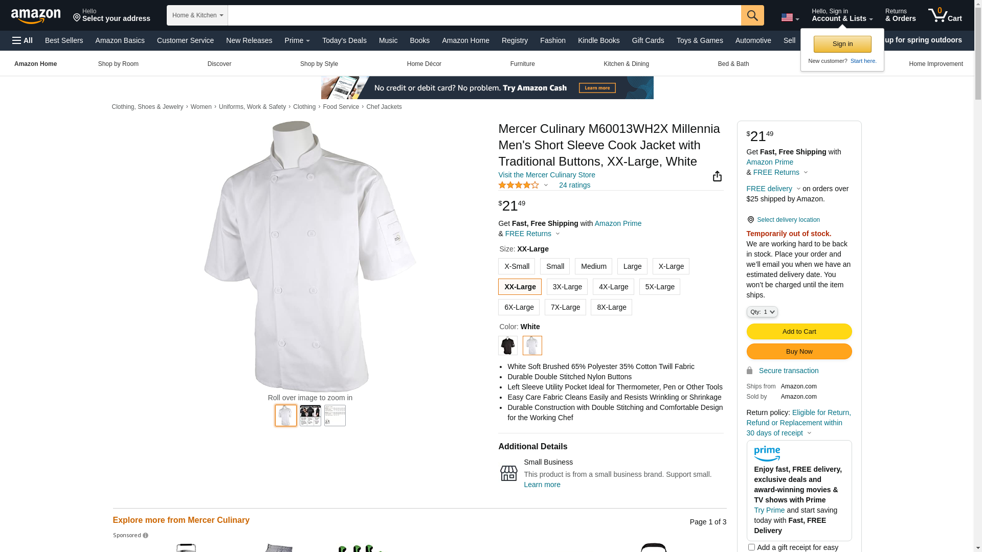 Mercer Culinary M60013WH2X Millennia Men's Short Sleeve Cook Jacket with Traditional Buttons, XX-Large, White