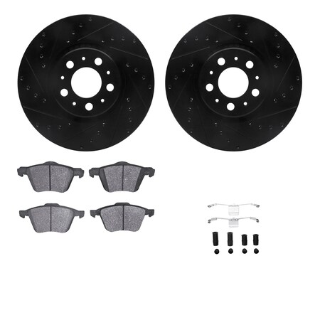 Dynamic Friction Company Front Brake Rotors Drilled and Slotted Black with 5000 Euro Ceramic Brake Pads includes Hardware - 8612-27043