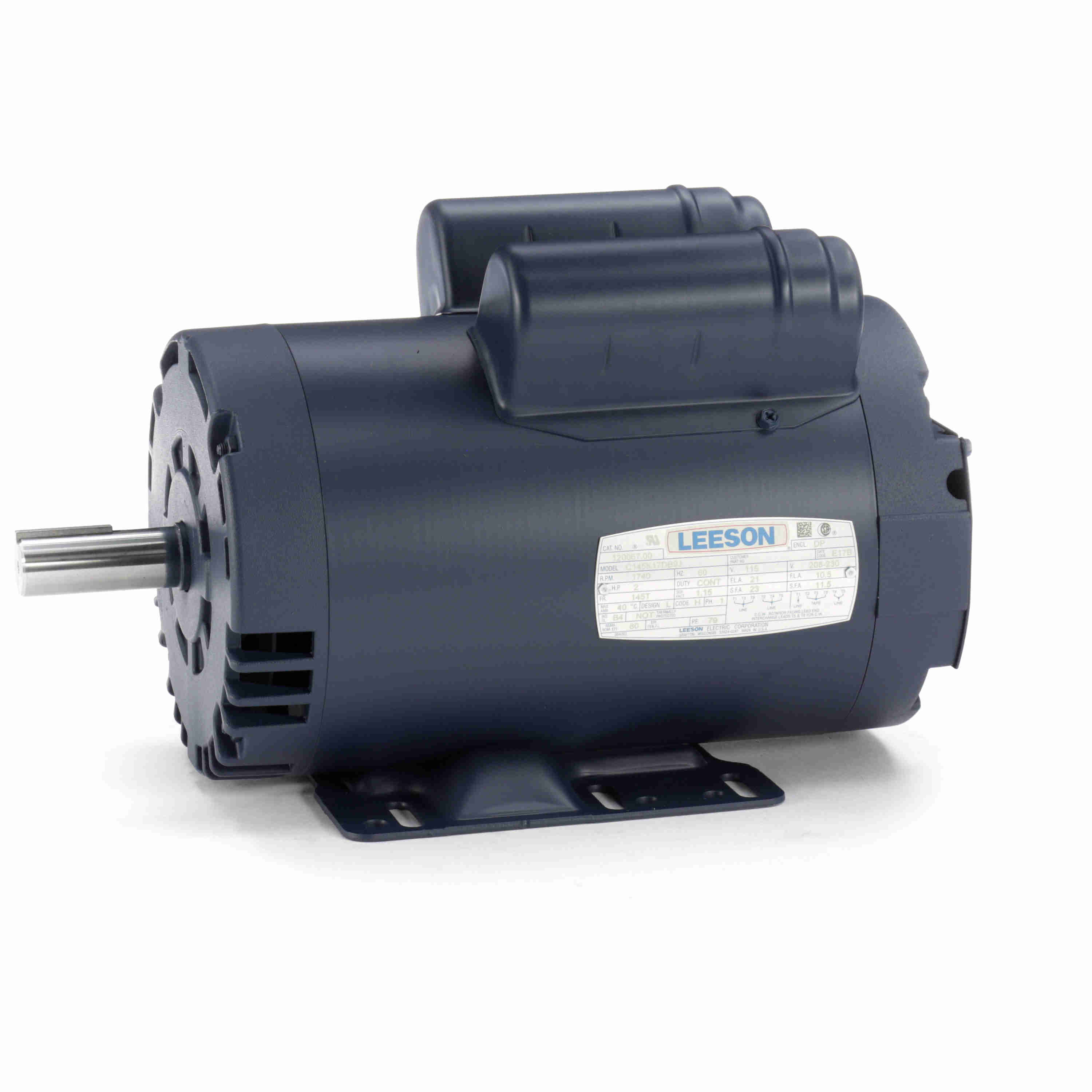 Leeson Electric, 120067.00, 2HP, 1740RPM, 1PH, 115V;208V;230V, J145T Frame, Standard Flange, Foot Mount, DP, General Purpose Motor