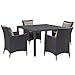 Modway Convene Wicker Rattan 5-Piece Outdoor Patio Dining Set with 47" Square Dining Table and Four Dining Arm Chairs in Espresso Mocha