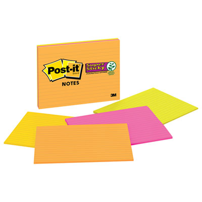 Post-it Super Sticky Lined Notes, 4 Sticky Note Pads, 8 x 6 in., School Supplies, Office Products, Sticky Notes for Vertical Surfaces, Monitors, Walls and Windows, Energy Boost Collection