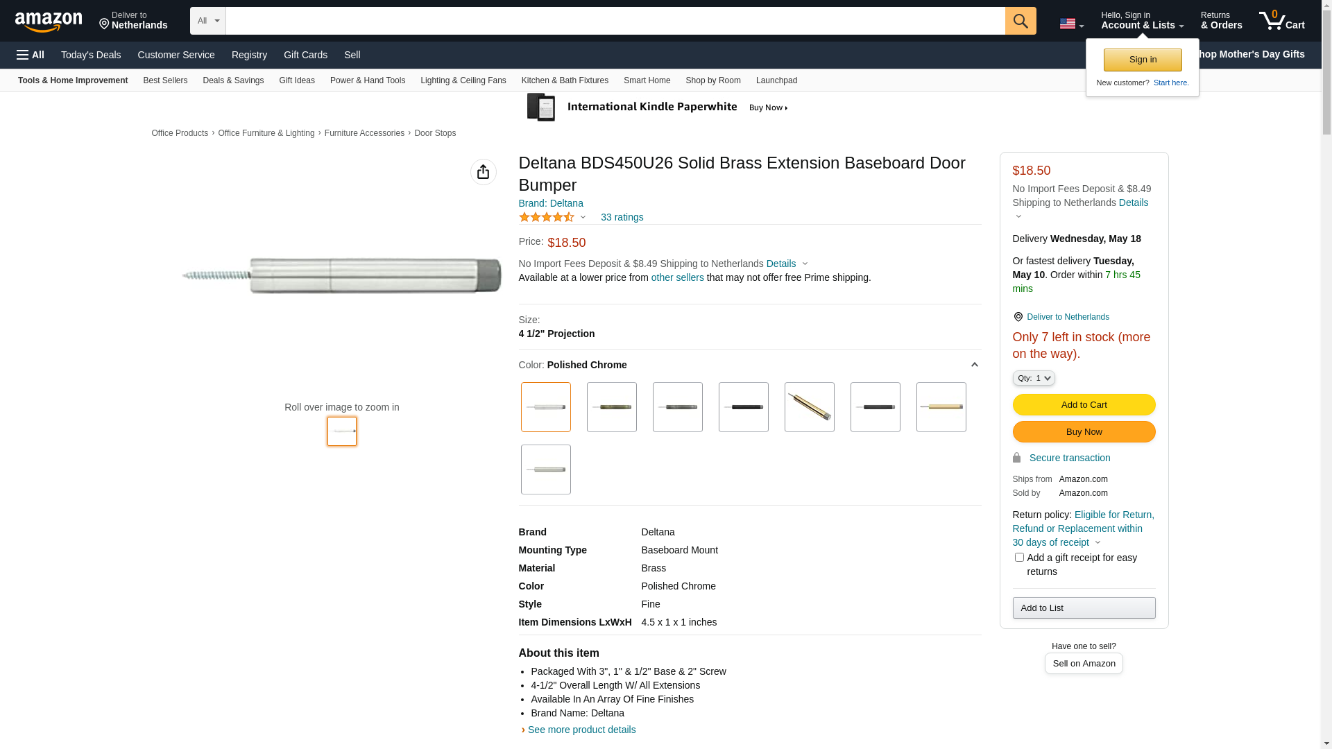 Deltana BDS450 4-1/2" Maximum Extension Solid Brass Baseboard Door Bumper, Polished Chrome, Pack Of 2