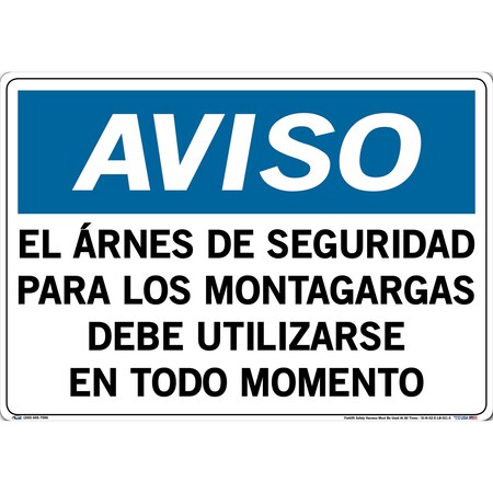 Vestil Notice SignSI-N-52-E-LB-011-S 52 20.5X14.5 LABEL/DECAL.011 Forklift Safety Harness Must Be Used At All Times EL ÁRNES DE SEGURIDAD PARA LOS MONTAGARGAS DEBE UTILIZARSE EN TODO MOMENTO