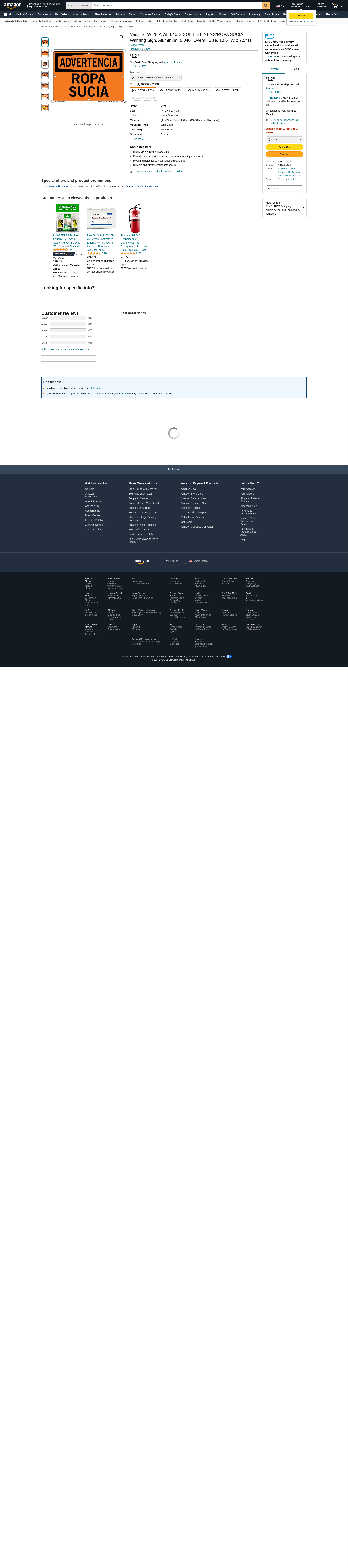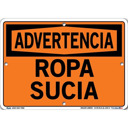 Vestil SI-W-28-A-AL-040-S SOILED LINENS/ROPA SUCIA Warning Sign, Aluminum, 0.040" Overall Size, 10.5" W x 7.5" H