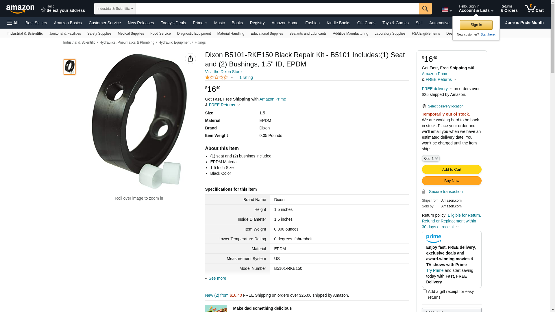 ![]() andersonprocess.com | B5101-RKE150 | 1 | Ships in 3-5 Business Days | 1 | 1 @ $29.91 |