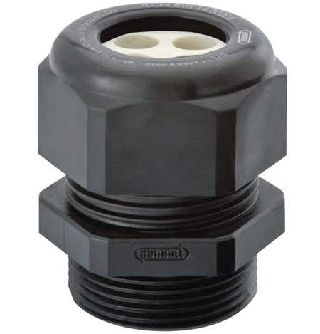 Sealcon CD09N2-BXA black nylon cord grip for hazardous locations has 3/8" NPT Thread, with a 2 hole, .12" (3 mm) insert. Sold Individually. Hummel 1.581.3801.71