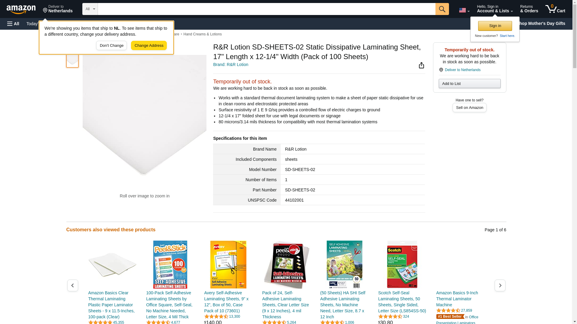 R&R Lotion SD-SHEETS-02 Static Dissipative Laminating Sheet, 17" Length x 12-1/4" Width (Pack of 100 Sheets)
