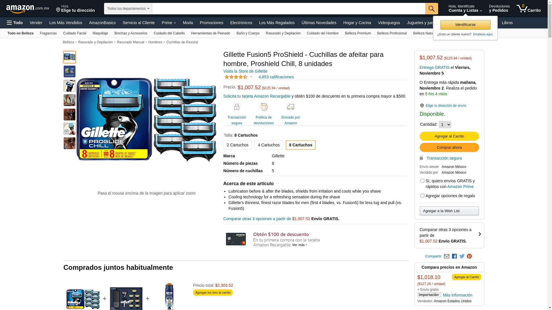Gillette Fusion5 ProShield Chill Men's Razor Blades, 8 Blade Refills