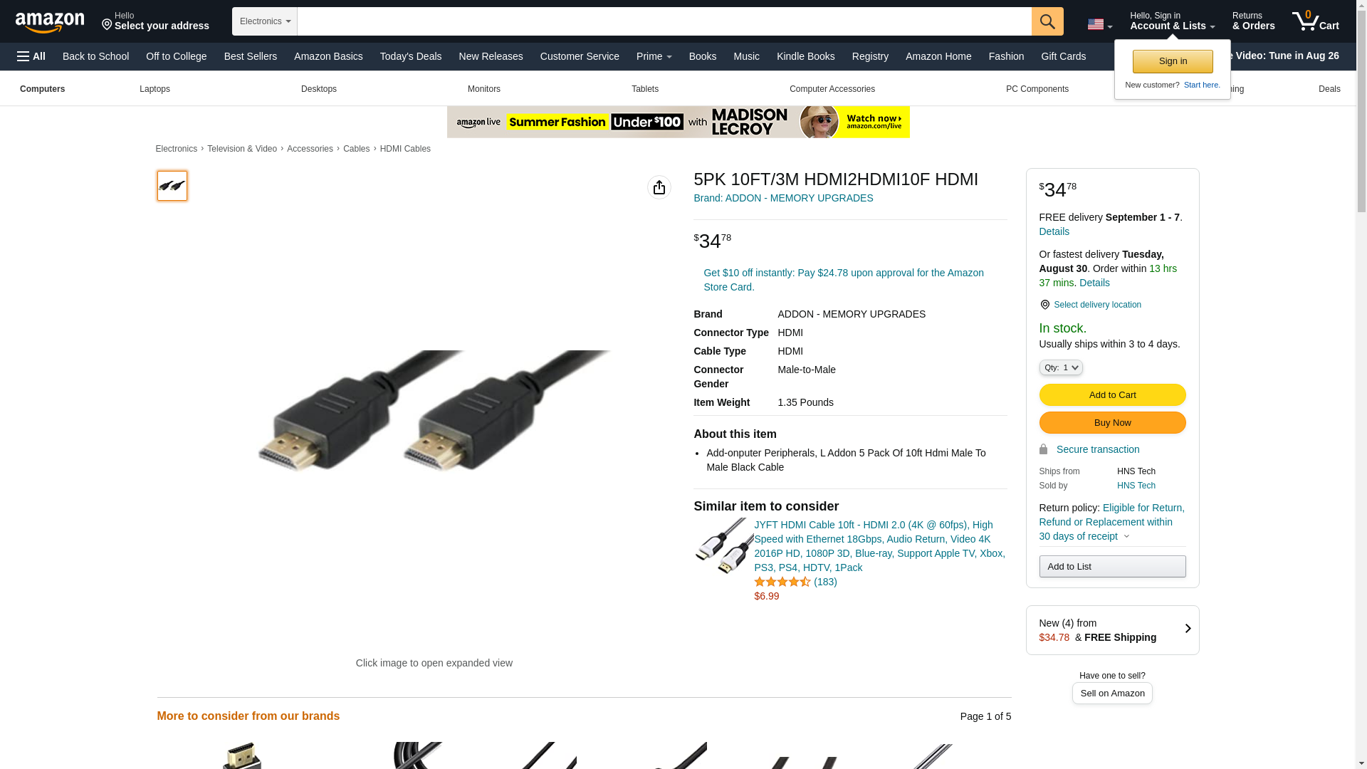 | HDMI2HDMI10F-5PK | 1 | -2 | 1 | 1 @ $28.31 | |