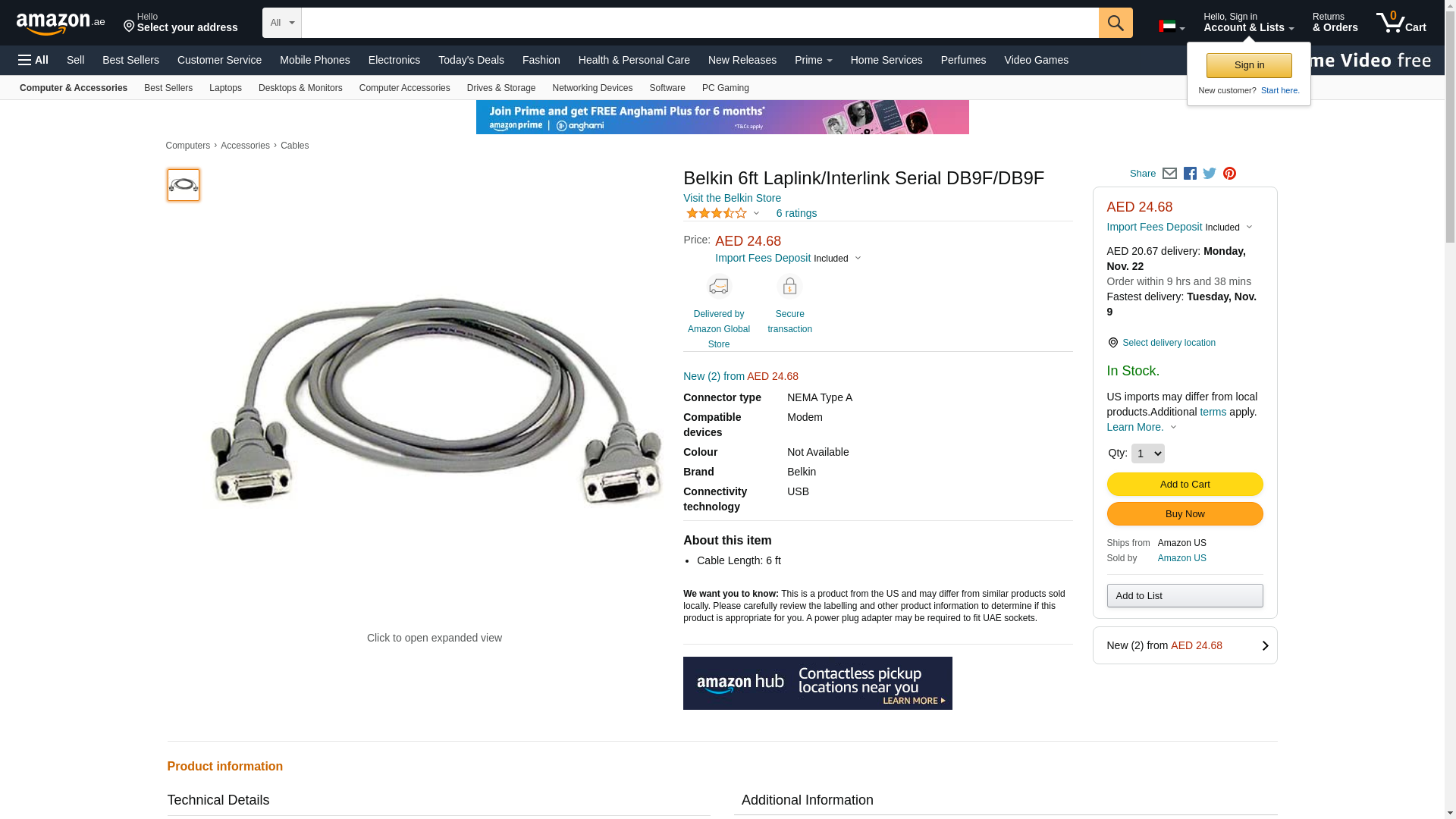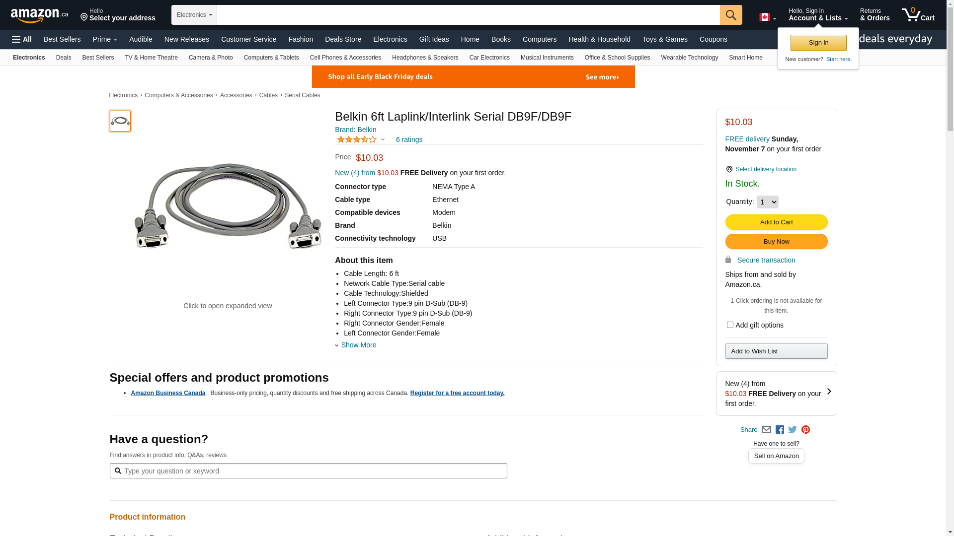 Belkin 6ft Laplink/Interlink Serial DB9F/DB9F