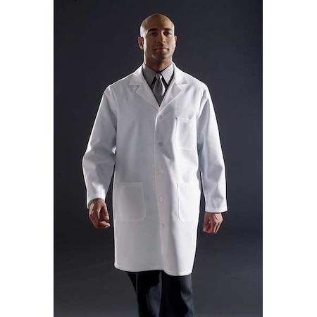 - Price For: Each Fabric Weight: 5 oz. Number of Pockets: 3 Item: Collared Lab Coat Length: 39" Color: White Gender: Unisex Material: Polyester/Cotton Closure Type: Buttons Size: 2XL Fits Chest Size: 52" Country of Origin (subject to change): Multiple
