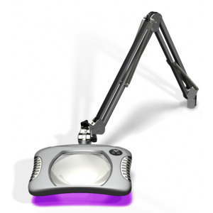 O.C. White 82400-4-UV-S Combo Ultraviolet/Visible LED Magnifying Lamp, 7x5.25" Rect, 4 Diop 2x, 43", ESD, Sil, Green-Lite | JensenTools
