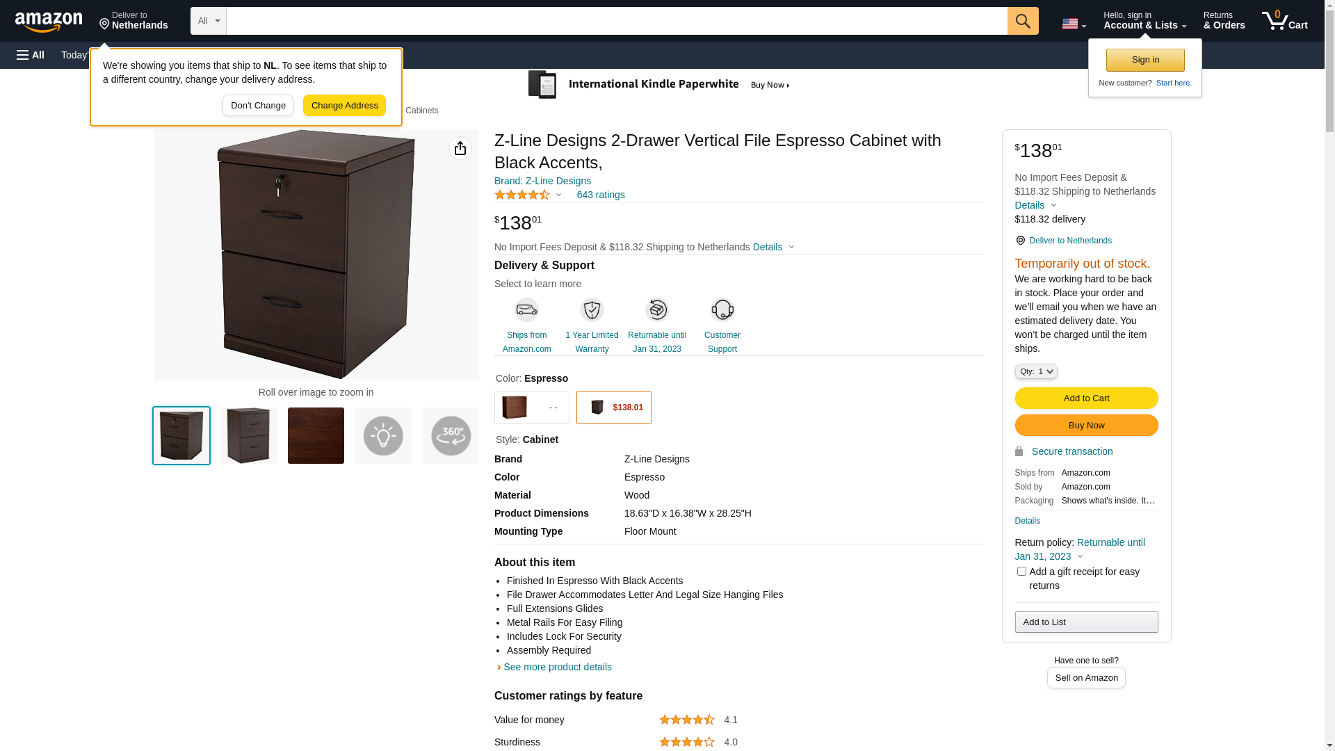 Z-Line Designs 2-Drawer Vertical File Espresso Cabinet with Black Accents,