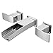 - Square modern bath faucet with wall mount installation and waterfall spout