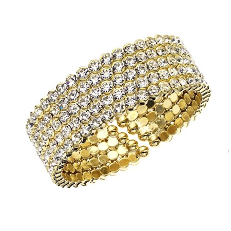 14K Gold, Rose Gold, or Rhodium Plated Five Row Honeycomb Crystal Cuff Bracelet