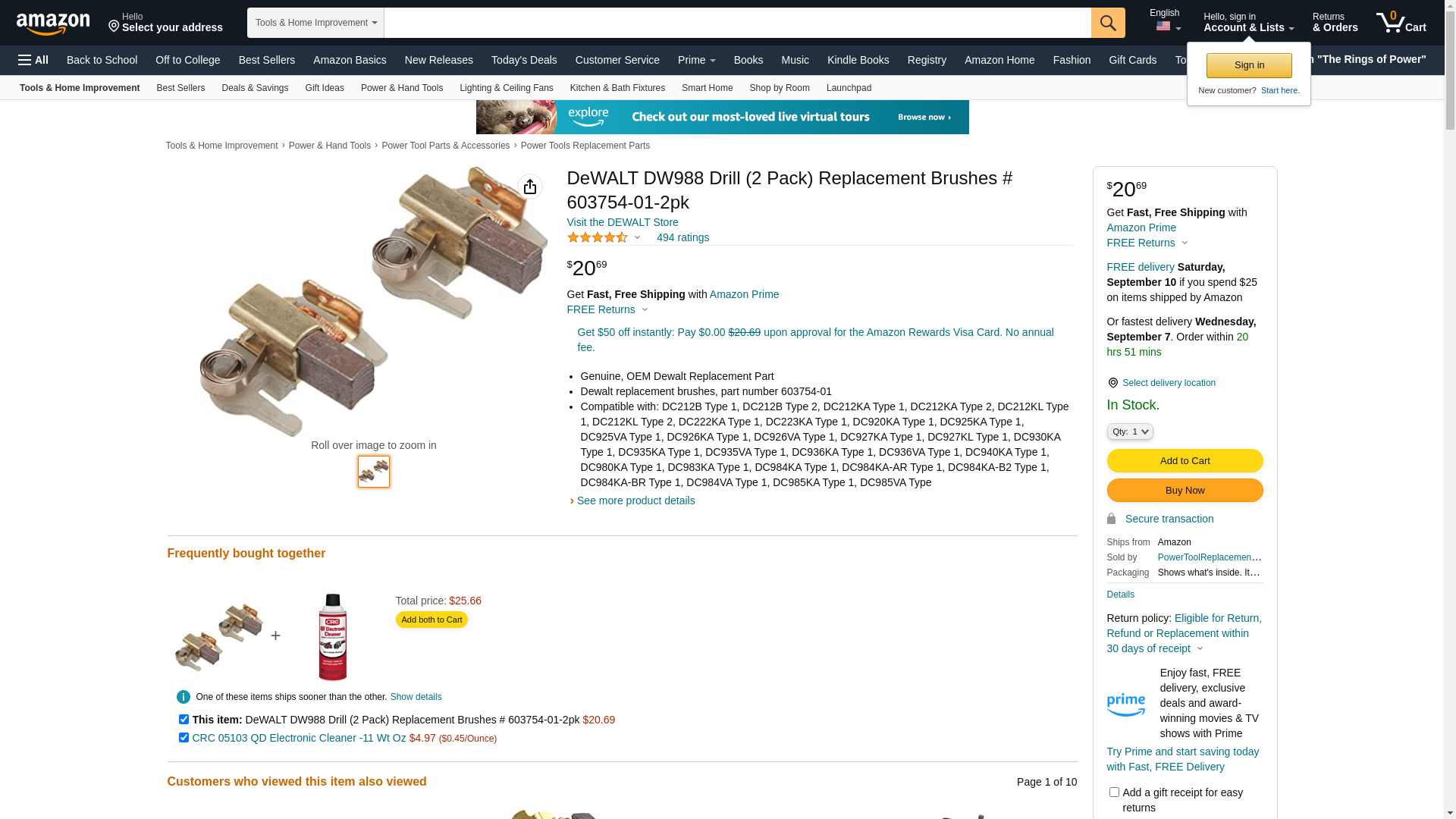 | Feature | Includes: (1) - DeWALT DW988 Drill (2 Pack) Replacement Brushes # 603754-01-2pk |