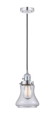 This 1 light Mini Pendant from the Franklin Restoration Bellmont collection by Innovations Lighting will enhance your home with a perfect mix of form and function. The features include a Polished Chrome finish applied by experts. Product Features Include: Brand: Innovations Lighting, Collection: Franklin Restoration Bellmont, SKU: 201CSW-PC-G192-LED, UPC: 745684619031, Category: Mini Pendant, Finish: Polished Chrome, Glass: Clear Bellmont, Material: Steel/Cast Brass/Glass, Designer: Bruno Marashlian, Width: 6.25 in., Height: 10.00 in., Max Height: 131.50 in., Diameter: 6.25 in., Backplate/Canopy Width: 4.50 in., Backplate/Canopy Length: 0.00 in., Backplate/Canopy Thickness: 0.75 in., Weight: 2.60 lb., Included Chain/Rods/Cord: 10 Feet Of Black Textured Cord, Switch: On/Off Turn Switch, Warranty: 2 Year Finish, Lifetime Electrical, Bulbs Included: Yes, Bulb Category: LED, Primary Bulb(s): 1 x 3.50 watts Medium Base ST64 Vintage, Color Temperature: 2700K, Color Rendering Index: 82.0000, Total Lumens: 350, Voltage: 120, Safety Rating: UL/ETL Damp, Title 20 Approved