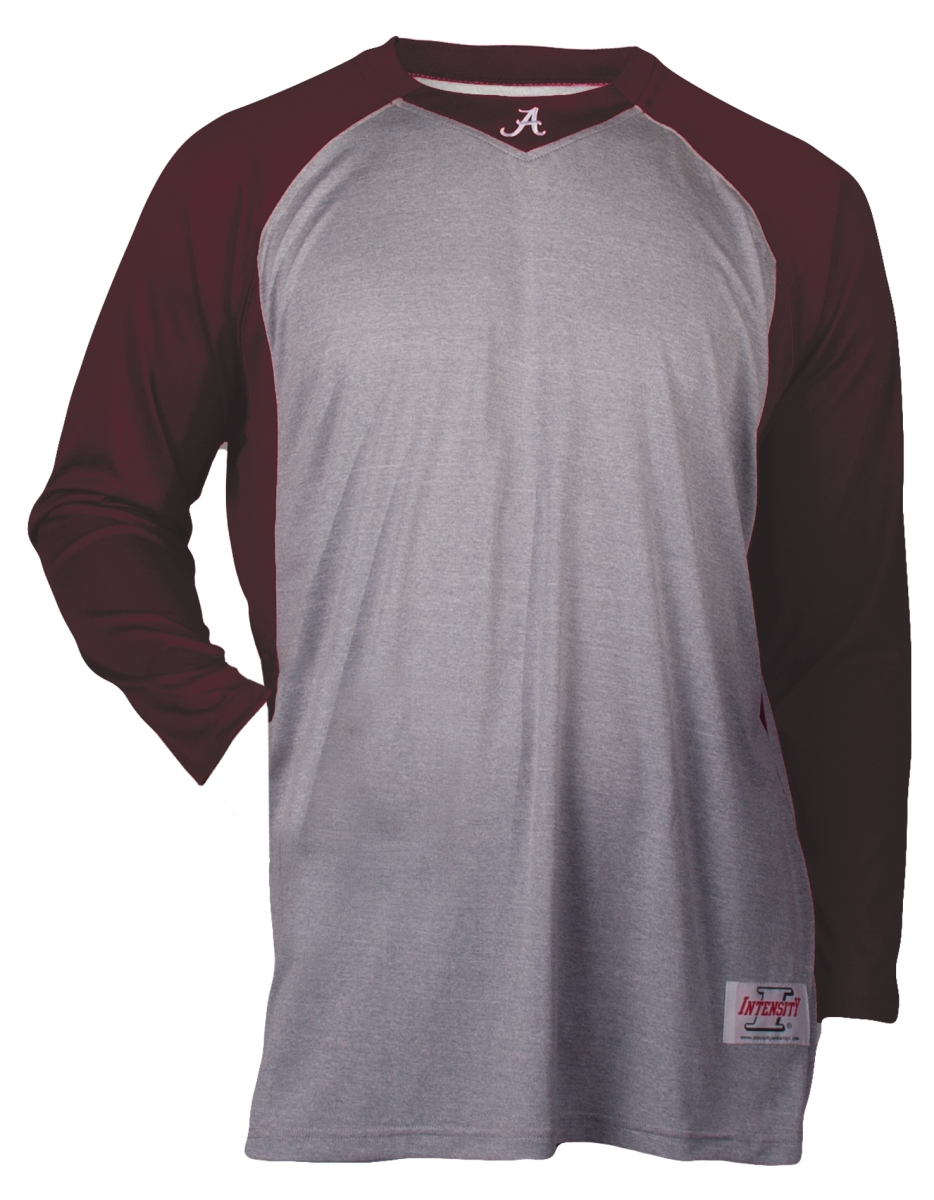 Intensity N6808922XLG Baseball Shirt with Sleeve for Men, Oxford & Maroon - Extra Large