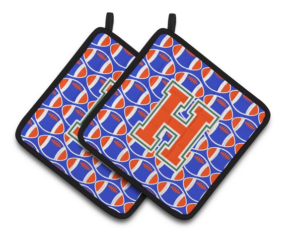 Carolines Treasures CJ1083-HPTHD Letter H Football Green, Blue & Orange Pair of Pot Holders, 7.5 x 3 x 7.5 in.