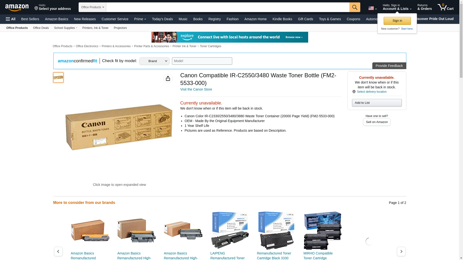 | Feature | Canon Color IR-C2330/2550/3480/3880 Waste Toner Bottle (20000 Page Yield) (FM2-5533-000) |