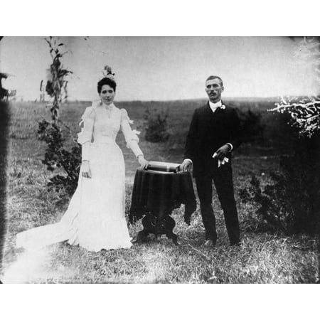 Prairie Wedding 1890S Na Young Couple Posing For Their Wedding Photograph On The Prairie In Nebraska 1890S Poster Print by Granger Collection
