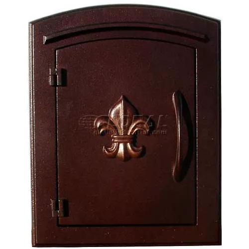 Qualarc MAN-S-1402-AC Manchester Security Drop Chute Mailbox with "Decorative Fleur De Lis Logo" Faceplate in Antique Copper