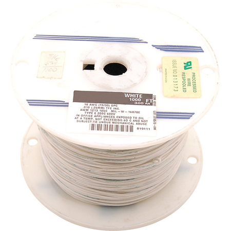 | Feature | <b>Price For:</b> Pack of 10<b>Order Unit:</b> Spool of\xa01000 <b>Conductor Area CSA:</b>: - <b>Conductor Material:</b>: Tinned Copper <b>Conductor Size AWG:</b>: 26 <b>External Diameter:</b>: 1.549 <b>Jacket Color:</b>: White <b>Jacket Material:</b>: PVC <b>No. of Strands x Strand Size:</b>: - <b>Reel Length (Imperial):</b>: 100 <b>Reel Length (Metric):</b>: 30.48 <b>SVHC:</b>: No SVHC (17-Dec-2014) <b>Voltage Rating:</b>: 300 |