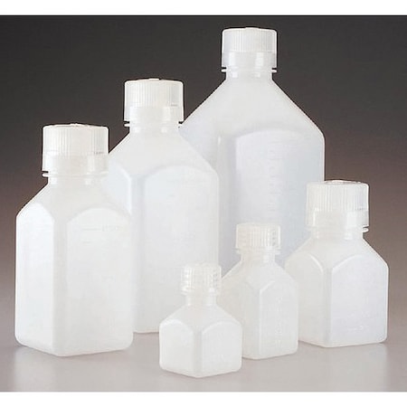 Nalge Nunc Square Bottles, High-Density Polyethylene, Narrow Mouth, NALGENE 2018-0060, Pack of