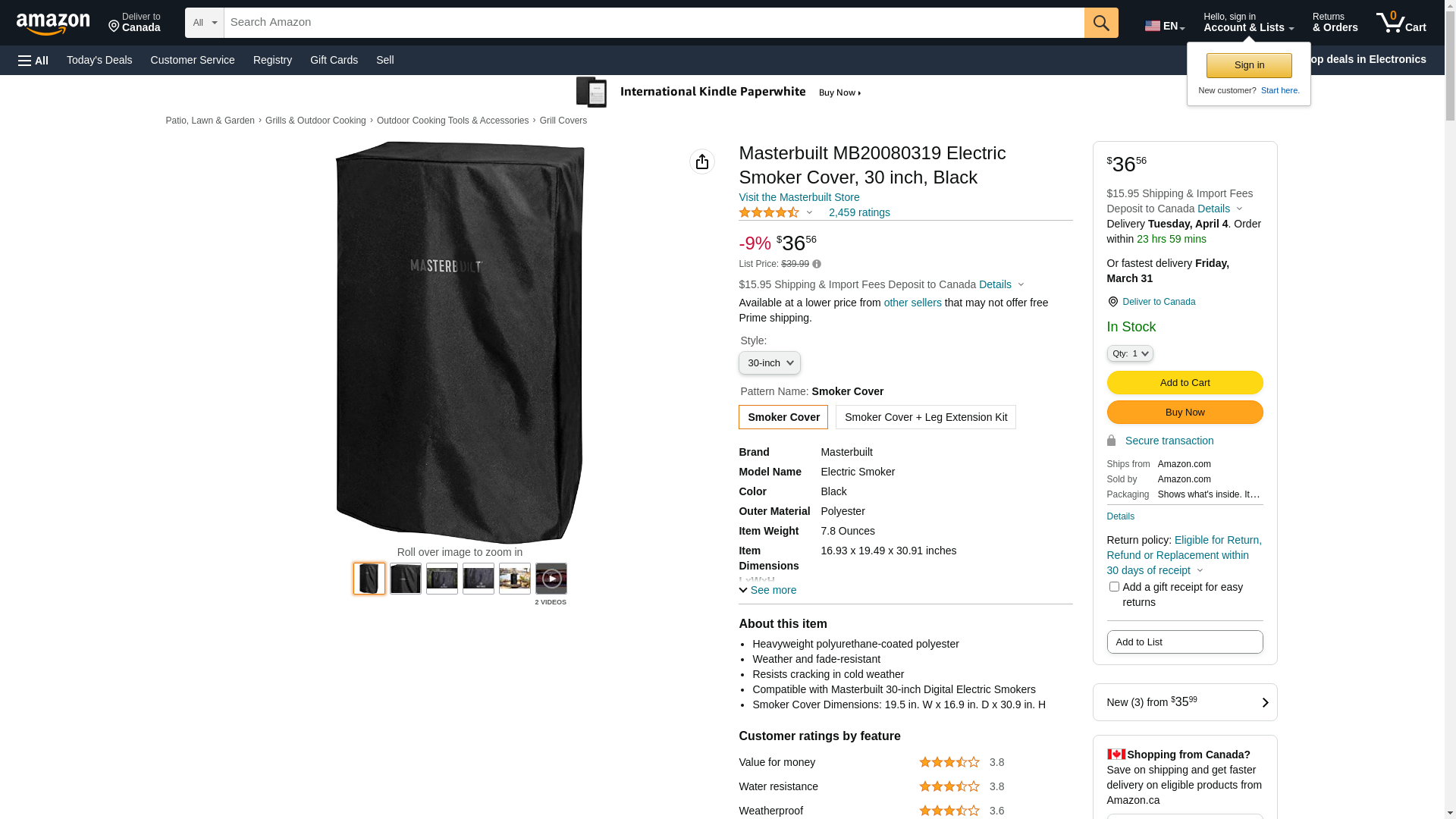 Get it now and save on the Masterbuilt Electric Smoker Cover, Polyurethane-Coated Polyester, Weather and Fade-Resistant, Black - MB20080319 at PlumbersStock.com - home improvement you can afford.