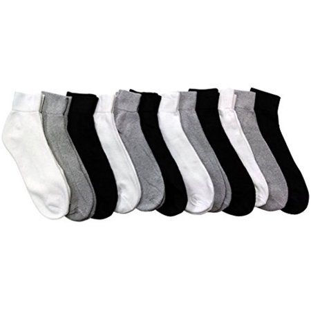 Ex-Cell mb-545-asst-9-11 12 Pair Womens Quater Lenght Athletic Ankle Running Socks - White, Black & Gray
