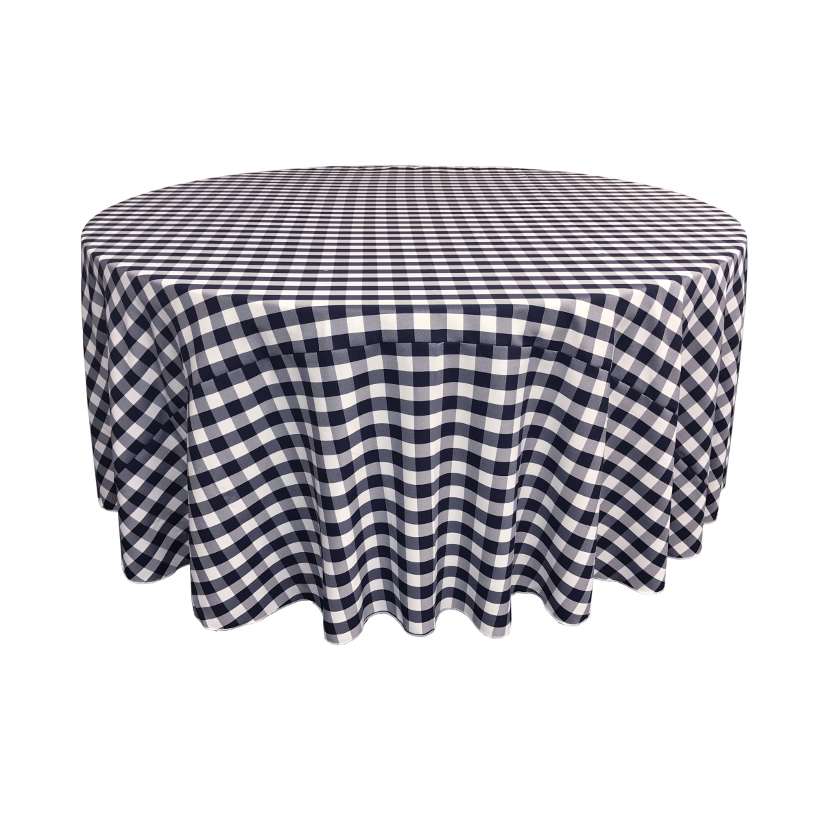 LA Linen TCcheck108R-NavyK72 Polyester Gingham Checkered Tablecloth, White & Navy - 108 in. Round