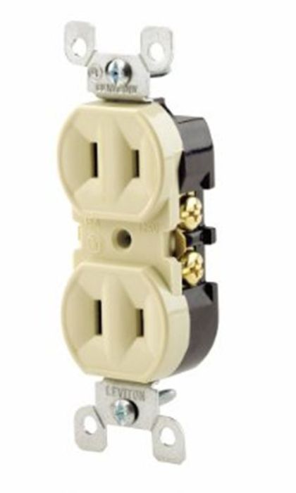 Leviton 5320-IUP 125V 15A 2P3W 5-15R Ivory Thermoplastic Duplex Straight Blade Receptacle
