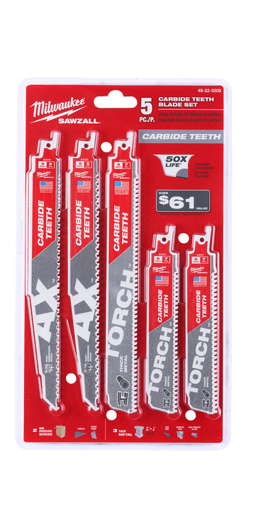 Milwaukee 49-22-5505 5-Piece Carbide Teeth SAWZALL Blade Set