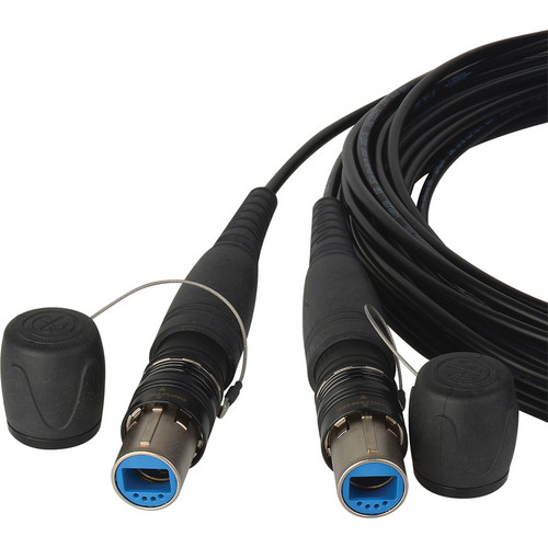 The opticalCON DUO cable connector accommodates a standard optical LC-Duplex connector in a ruggedized and durable all-metal housing. It features a spring loaded push-pull locking mechanism and an excellent cable retention utilizing aramid yarn. The optical connection is exceptional well protected against dirt and dust by an automatically operated sealing cover.