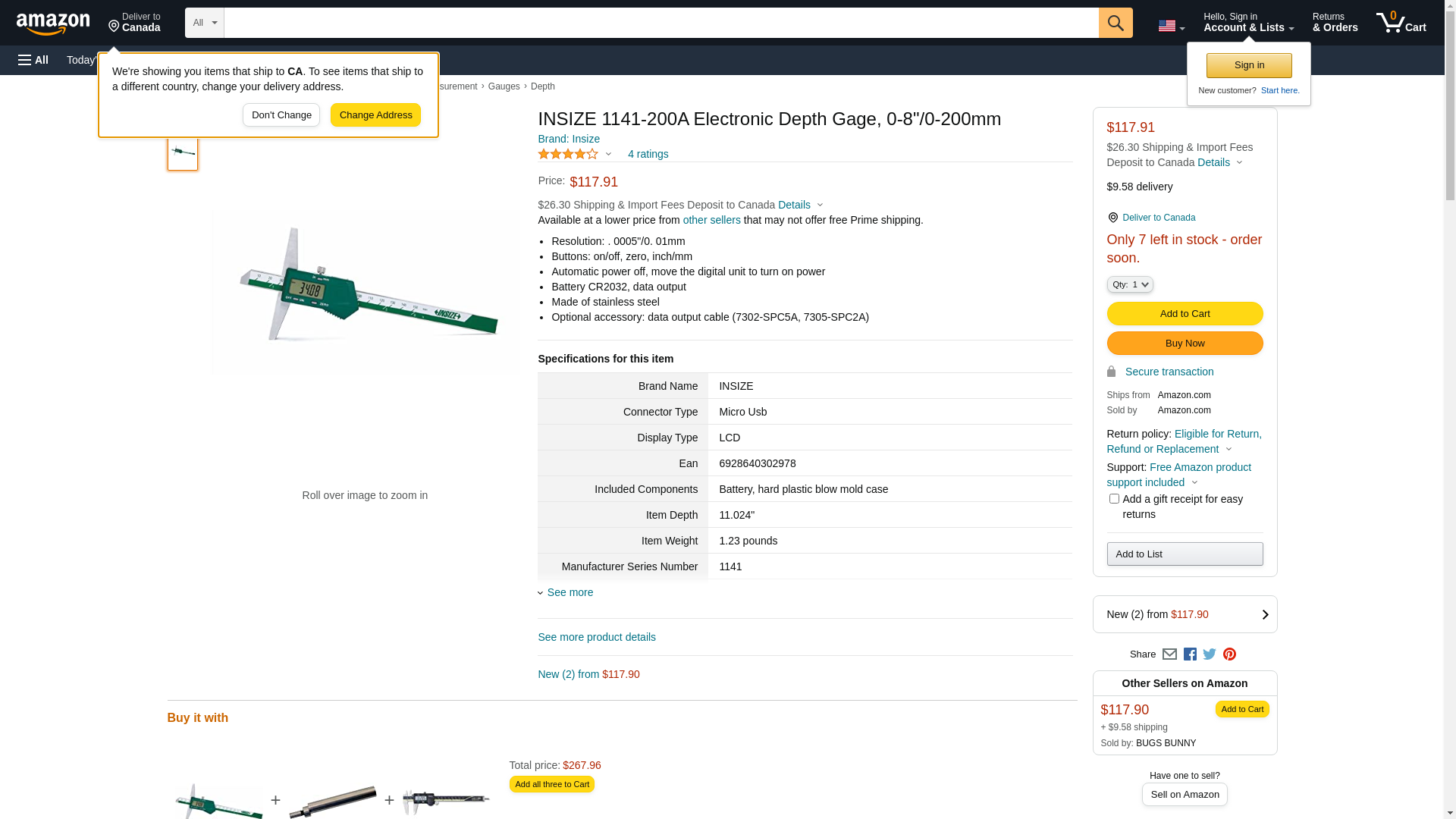 INSIZE 1141-200A Electronic Depth Gage, 0-8"/0-200mm