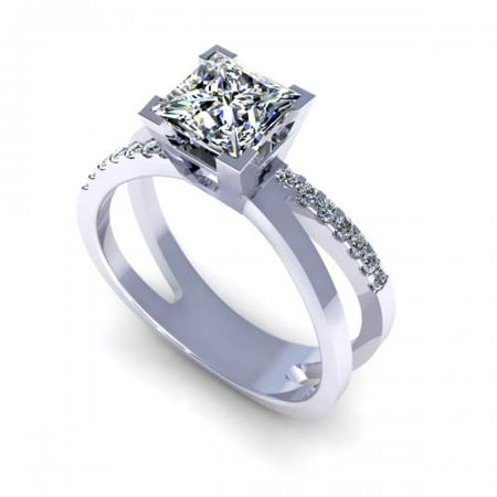 0.80CT princess and round cut diamonds engagement ring
